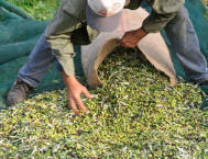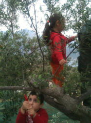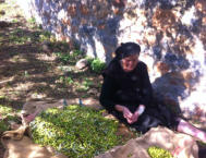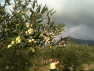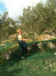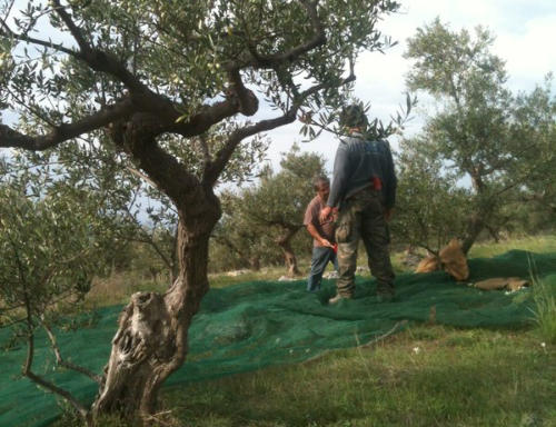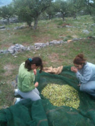 Im November ist Erntezeit, eine sehr arbeitsreiche Zeit. Alle helfen mit, das “Gold” ihrer Region ins Haus zu bringen. Damit haben sie Jahrhunderte in dieser kargen Gegend überleben können und tun es weiterhin. Die Bäume sind klein, grosse Maschinen können an den steilen Terrassenhängen nicht eingesetzt werden. So wird traditionell mit der Hand und kleinen Handrechen gepflückt. Belohnt wird die mühsame Arbeit mit einem außerordentlichen Öl, für das sie oft schon Vorbestellungen aus Athen und dem Ausland haben.