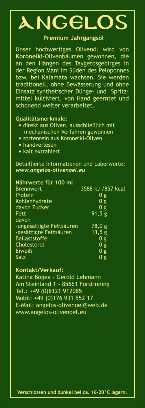 Angelos natives Olivenöl extra - 500 ml Flasche